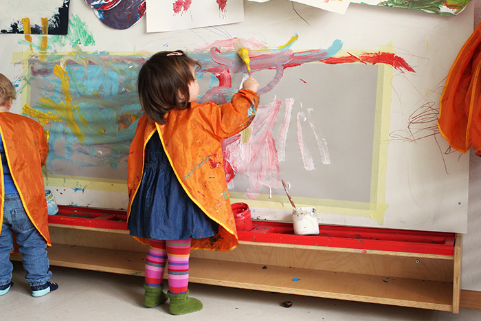 In unserem Atelier können die Kinder ersten gestalterischen Angeboten nachgehen. Hierbei ist es uns besonders wichtig, dass der Prozess und nicht das Ergebnis im Vordergrund steht. Die Kinder sollen die Möglichkeit haben, sich mit verschiedenen Materialien, Farben und Techniken auseinanderzusetzen und mit diesen zu experimentieren, ohne dass es ein richtig oder falsch dabei gibt oder wir die Arbeiten der Kinder bewerten.
