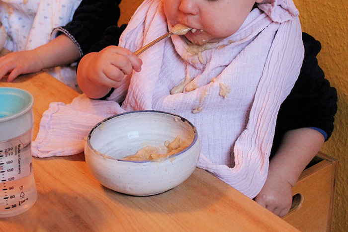 Neben dem Frühstück und Mittagessen, welches hier stattfindet, dürfen die Kinder im Essbereich auch kleinen hauswirtschaftlichen Arbeiten nachgehen. So sind sie dabei behilflich, wenn jeden Mittwochmorgen frische Brötchen geknetet werden, Kuchen für einen bevorstehenden Geburtstag gebacken wird oder ein paar Kartoffeln für die Suppe am Mittag geschält werden.