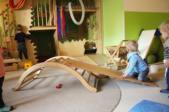 Die Räumlichkeiten und Materialien unserer Krippe sind für uns von hoher Bedeutung und ganz bewusst ausgewählt. Wir sehen den Raum als „dritten Erzieher“, der, wenn er sinnvoll gestaltet und wertvoll eingerichtet ist, dem Kind hilft, die Welt und sich selbst darin nachhaltig erfahren und entdecken zu können.