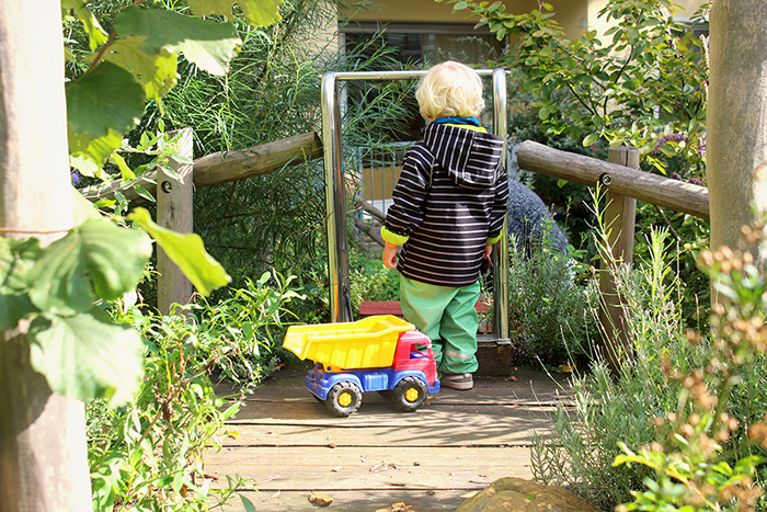 - die Umgebung für das Kind so gestalten, dass es in ihr möglichst eigenständig agieren kann und sich als selbstwirksam erlebt.